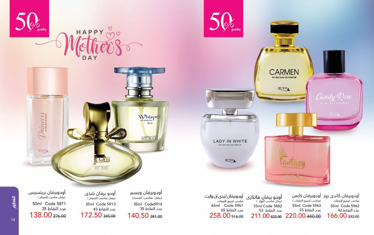 يقدم كتالوج ماي واي مارس 2026 مجموعة مميزة من منتجات التجميل والعناية الشخصية، مع عروض خاصة بمناسبة عيد الأم وعيد الفطر المبارك. استمتعي بخصومات تصل إلى 50% على منتجات مختارة بجودة عالية وأسعار تنافسية تناسب جميع أفراد الأسرة.